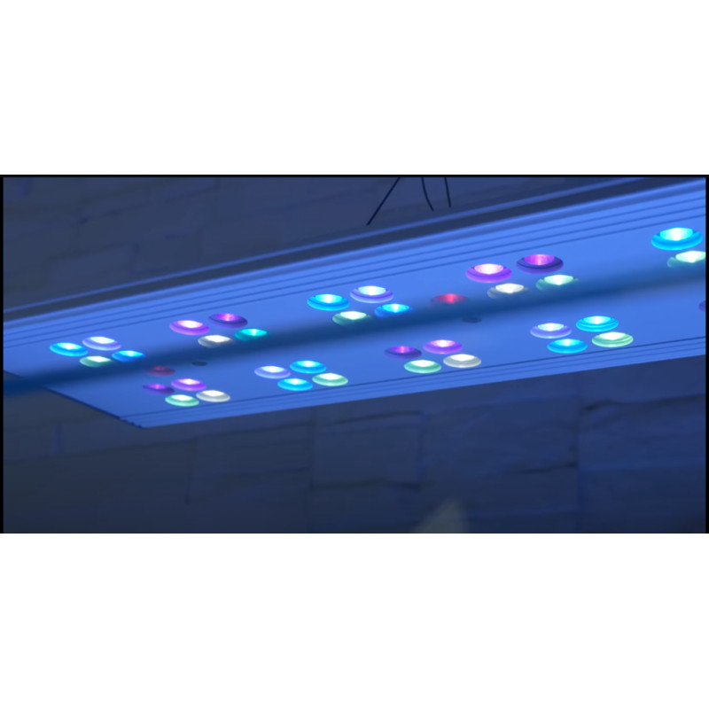 Grâce au design allongé du Straton Flex, il est désormais possible d'obtenir un éclairage uniforme sur toute la longueur et en ajoutant des lumières supplémentaires pour répondre de manière flexible aux besoins des coraux. 7 canaux de couleurs permettent de créer une infinité de spectres pour s'adapter à vos coraux et au rendu de votre aquarium (des spectres prédéfinis sont également fournis dans l'application).