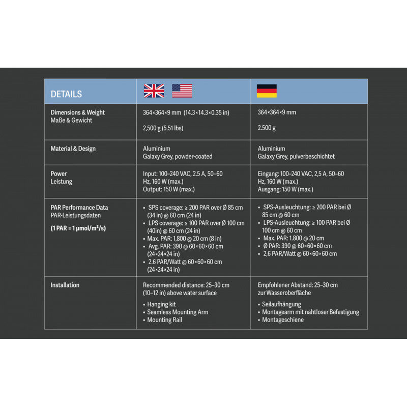 Son design fin et épuré, associé à un fonctionnement silencieux, en fait une rampe aussi esthétique que performante. La Straton X s’intègre parfaitement au-dessus des aquariums récifaux modernes, que ce soit en suspension ou sur supports dédiés (accessoires disponibles séparément).