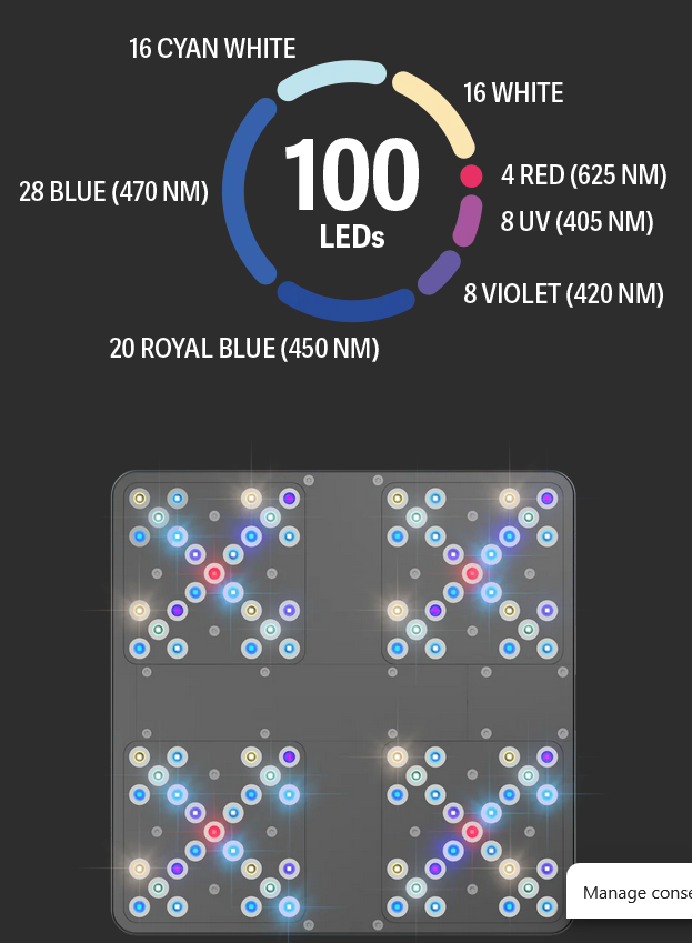 Spectre complet optimisé pour SPS, LPS et coraux mous