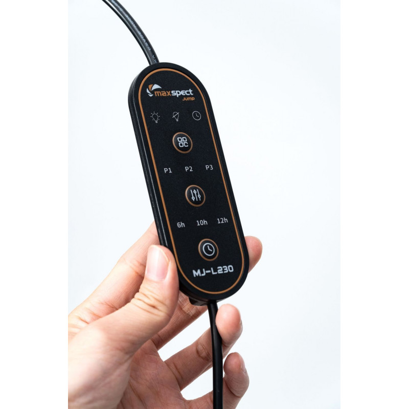 Équipée de 43 LEDs réparties en diodes blanches, bleu ciel, bleu profond, violettes et UV, la MJ-L230 développe une puissance maximale de 30 watts. Maxspect a volontairement écarté les diodes rouges et vertes afin de privilégier les teintes bleues, violettes et ultraviolettes (395–400 nm), particulièrement appréciées des récifalistes modernes… et de leurs coraux.