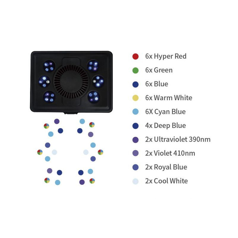 Pour des aquariums avec coraux SPS par exemple, il faut environ un module MJ-L165 pour 30 cm de longueur d'aquarium.