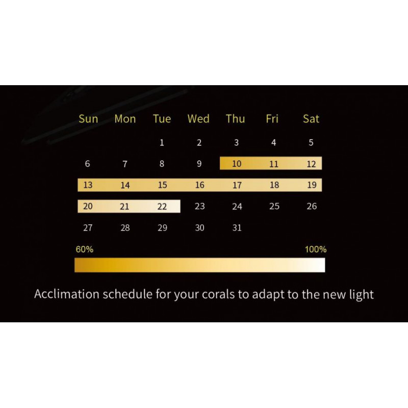 L'APP permet également de programmer un clair de lune avec le cycle lunaire automatisé ou encore de mettre en place un programme d'acclimatation destiné aux coraux pour leur permettre de s'adapter à la nouvelle lumière.