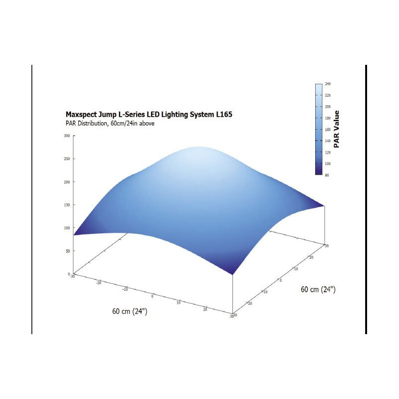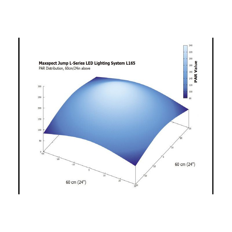 Alors que certains systèmes à LED perdent jusqu'à 40% de leurs performances lorsqu'ils sont réglés à des températures de couleur différentes, le système LED Maxspect Jump L165 fonctionne entre 95-100% (entre 62-65 W) de l'efficacité maximale entre les différents profils de couleur.