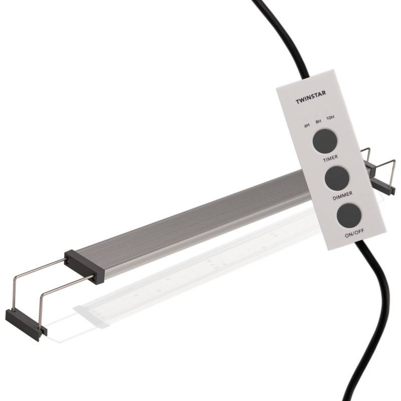 La rampe Twinstar B III est conçue pour les aquariums ouverts. Sont système de pose extensible lui permet de s'adapter facilement sur les différentes marques d'aquariums. La température de couleur de 6500°K est particulièrement adaptée à la pousse des plantes aquatiques (combinaison de leds RGB + White) et fait également très bien ressortir les couleurs de poissons.