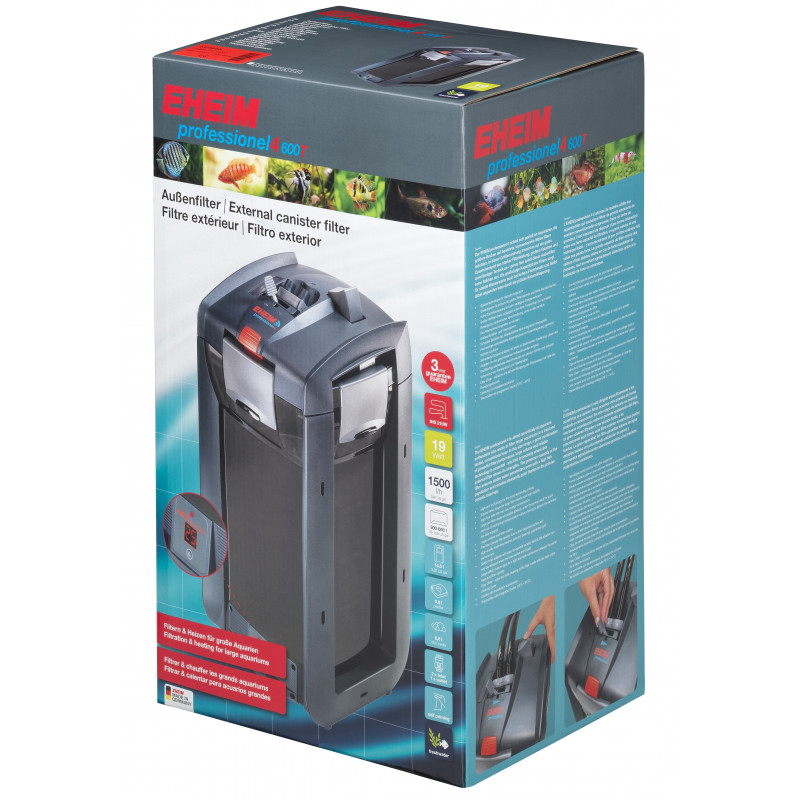 Filtre externe haut de gamme EHEIM Professionnel 4 600T avec chauffage intégré. Filtration puissante, silencieuse et fiable pour aquariums jusqu’à 600 litres.