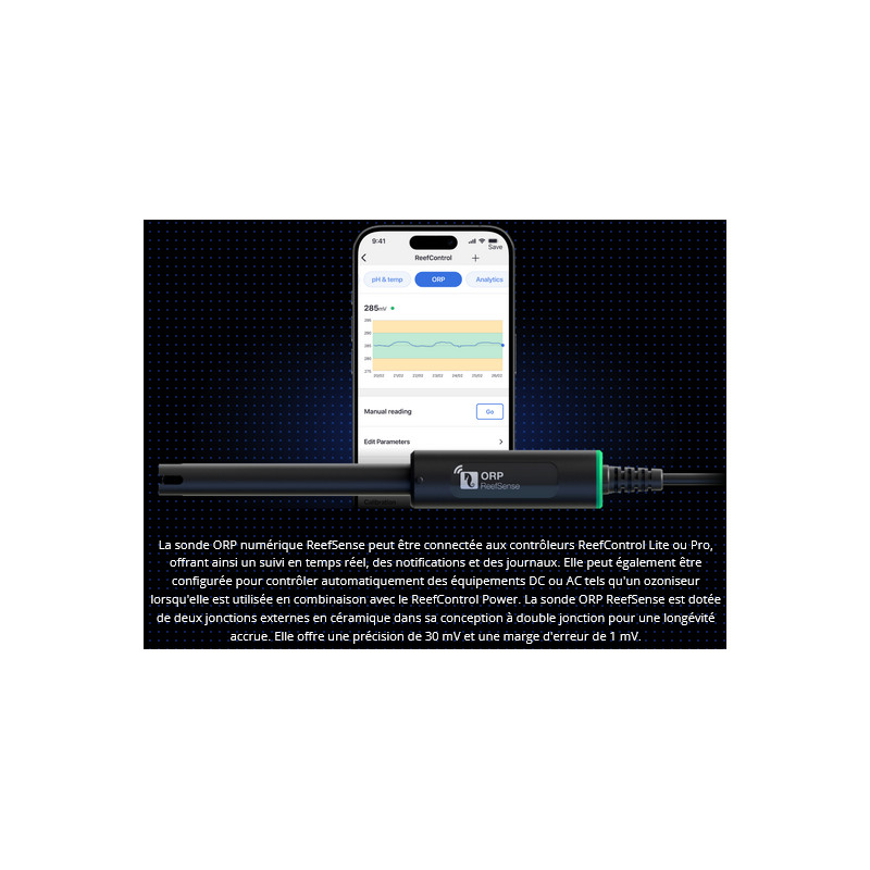 Compatible avec les contrôleurs Red Sea ReefControl Pro et ReefControl Pro Deluxe, la sonde ORP s’intègre pleinement à l’écosystème connecté ReefBeat. Les données mesurées sont transmises en temps réel à l’application ReefBeat, permettant un suivi à distance, l’analyse des historiques et la réception d’alertes personnalisées en cas de variation anormale.
