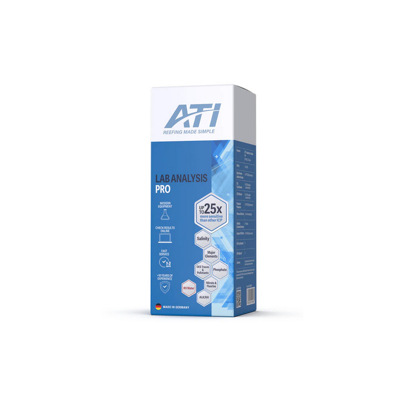 L'analyse de base de l'eau ATI ICP-OES est une analyse de laboratoire de 40 à 50 paramètres* de l'eau d'un aquarium récifal (* selon version) . Elle offre un aperçu complet de la santé de l'aquarium, ce qui est impossible avec les équipements de test traditionnels.
