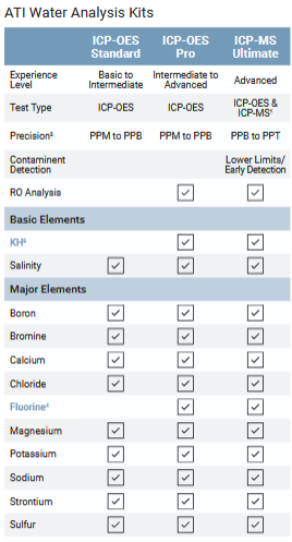 L'analyse de base de l'eau ATI ICP-OES est une analyse de laboratoire de 40 à 50 paramètres* de l'eau d'un aquarium récifal (* selon version) . Elle offre un aperçu complet de la santé de l'aquarium, ce qui est impossible avec les équipements de test traditionnels.