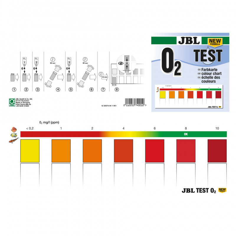 Facile à utiliser grâce à une notice claire et détaillée, le test JBL O₂ convient aussi bien aux aquariophiles débutants qu’aux aquariophiles confirmés souhaitant optimiser les conditions de vie de leur aquarium.