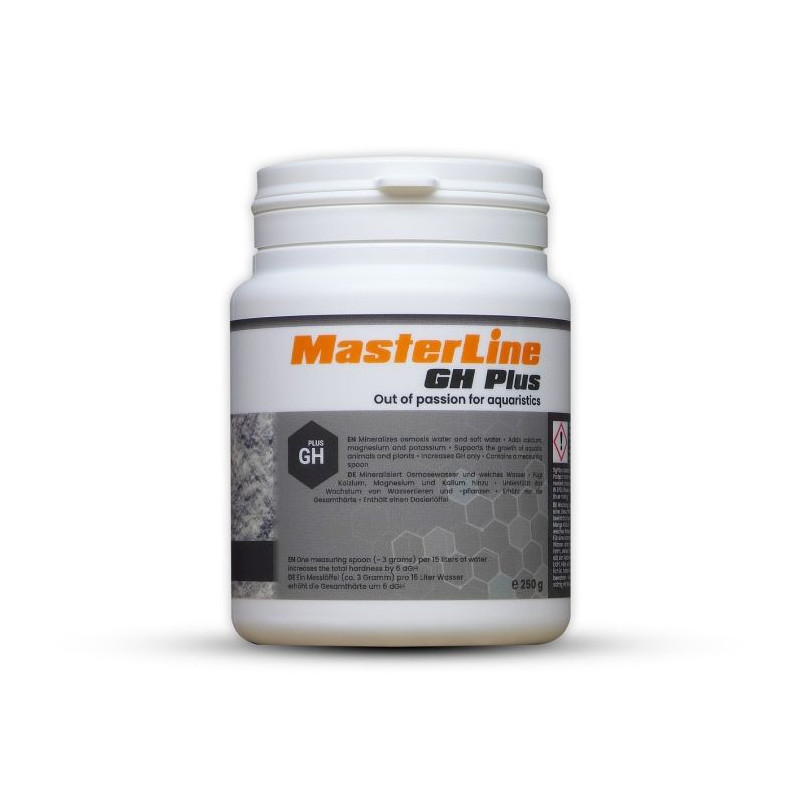 MasterLine GH Plus est un mélange de sels 100 % solubles spécialement conçu pour reminéraliser l’eau osmosée ou très douce (moins de 6 dGH). Il augmente uniquement la dureté totale (GH) sans modifier la KH, un paramètre crucial pour de nombreux habitants d’aquarium.